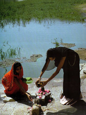 Tout différent est le contraste entre notre culture européenne et les pierres vénérées en Inde. Cette fois c'est l'érotisme qui suscite notre gêne, notre répulsion, notre méconnaissance - ou au contraire notre exploitation de consommation touristique. Nous retiendrons deux aspects : 1° surexploitée par le tourisme, la statuaire des Temples de Khajuraho ; 2° discret et méconnu, le culte du linga de Shiva diffusé par millions en tous lieux, et relevant de la pratique individuelle ou domestique.