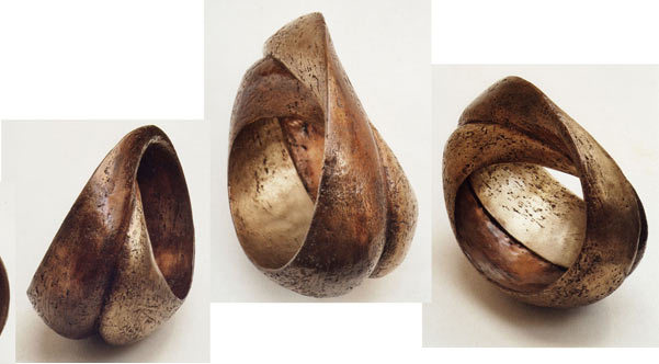Sculpture de prédilection : en prenant forme à ses yeux et dans ses mains, ces anneaux l'attachent et le retiennent, de l'infini à l'infime, depuis leurs immensités qui l'envoûtent et le dépassent, jusqu'à leurs étroitesses qui l'étreignent. Ouvrage étonnant : car aux prises avec sa terre ou sa pierre qu'il creuse et intériorise, le voilà lui-même épris et pénétré, habité, le voilà qui pénètre, qu'il entre, le voilà saisi d'une voûte immense en son voile de mystère, de la grotte primitive et ses féeries pariétales, de la nef de cathédrale et sa grande | |