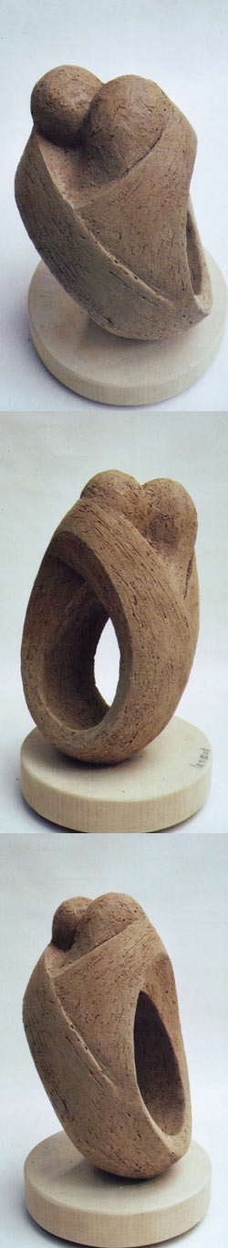 Qu'en est-il donc de ces marques culturelles dans ma sculpture ? Dès ses débuts, ma démarche m'a semblée devoir découler d'une attention très sensible et critique à l'histoire de ce fond d'héritage cultuel-culturel - du biblique à aujourd'hui : 1° je sais l'atavisme d'agressivité quelque peu emmêlé à mon émotivité, j'évite de m'y prêter par des œuvres témoins du mal et des malheurs ; 2° j'évite aussi d'accorder sa part à l'atavisme de lamentations et de plaintes ; 3° reste donc les expressions de bonheur : au plus souhaitable, il m'importe de savoir correspondre à ce qui a du goût et de la saveur, de la suavité, ce qui va me séduire par sa beauté ; il m'importe d'aller cette démarche simple, en sachant que c'est là une expression de confiance, d'émerveillement, de gratitude ; avec la secrète intuition que si Dieu est, il est à la discrétion du visage des miens, à commencer par les visages qui me tiennent le plus en désirs et mystères - désirs inconnus, séductions et beautés....