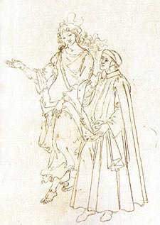 (2) Le titre du livre : 'Ici commence la Comédie de Dante Alighierri, florentin de naissance mais non de mœurs'. Le poète s'explique dans une lettre : 'Notre œuvre peut être appelée Comédie, car, si nous considérons le contenu, le début, L'Enfer, est horrible et fétide, mais le dénouement, Le Paradis, est agréable et heureux'. (L'histoire n°323 juin 2008 p.53)