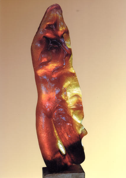 De la "Femme amphore ", l'Edition d'Art précédente, on retient une sensualité serrée dans sa nuit : sage et contenue, statuaire. Cette même femme, autre femme, "Une Aurore", commence à jeter ses feux, légère et puissante, elle monte comme emportée par la nuit : profusion qui déborde d'abondance, alors que flotte autour d'elle une aura de mystère. Non pas l'aurore, mais une aurore singulière. Chanson de mon enfance : "..ses cheveux déroulés que le soleil dore, sont aussi blonds que les blés, ô ma belle aurore" ; ou les aurores "aux doigts de rose" de l'Odyssée ; ou encore, formulés par mon fils d'après les derniers mots de Gide : "Lorsque je serai une étoile à côté du soleil, je ne devrai pas trouver l'aurore moins émouvante".