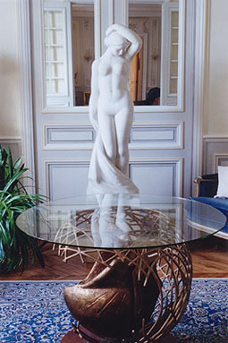 St.Jean" au milieu de leur brasier : un autre chant de sculpture réveillant en elle une gravité plus profonde encore où elle semble hâler de ses grands fonds, la vie, elle semble surgir de l'origine du monde, un paradis à jamais inatteignable, le bonheur des amants d'où elle fut conçue, et dont les traces et les vertus l'habitent à jamais, le désir d'en