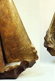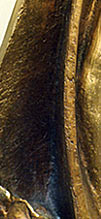 De plus, rigueur d'hiver contre douceur, on remarque ici la froideur du marbre, sa dureté, sa taille sans repentir possible, tandis que là, ma terre est ductile, sensuelle et heureuse à mes mains, d'une charnalité qui m'évoque celle des corps. Aux marbres mes mains dénudent, tandis qu'à la terre elles revêtent et dévêtent, elles ajoutent et ôtent, elles jouent ainsi du voile de mystère, elles révèlent autant qu'elles cachent.